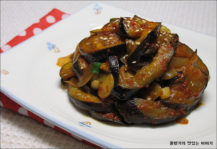 - 가지: 절여진 가지는 물기를 꼭 짠 후, 반달 모양이나 길쭉하게 먹기 좋은 크기로 썰어주세요.
