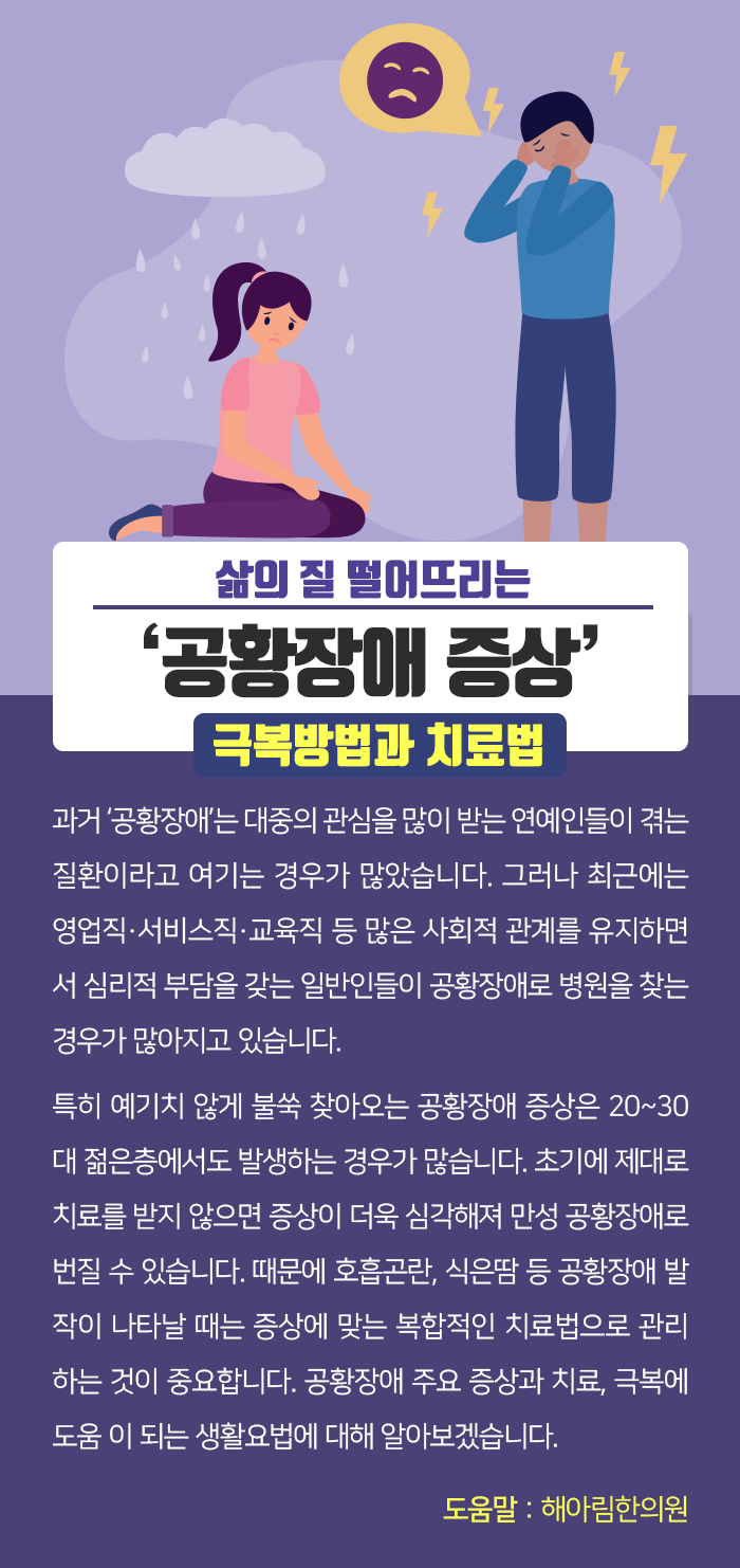 물론 예전에는 '공황장애'라는 말이 없었으나 속담에 유사한 경향이 있을 할 정도로 공황장애는 예로부터 있어왔던 병이라고 할 수 있어요.