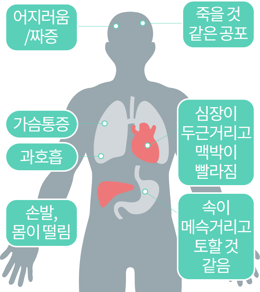 자 이번에는 공황장애의 증상에는 어찌 것들이 있는지 하단과 같이 한 번 짚어 봅시다.