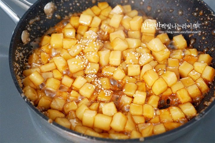 - 설탕/조청/물엿: 단맛을 조절하고 쫀득함을 더해줘요. 조청이나 물엿을 사용하면 윤기가 더 돌고 쫀득함도 살아나요.