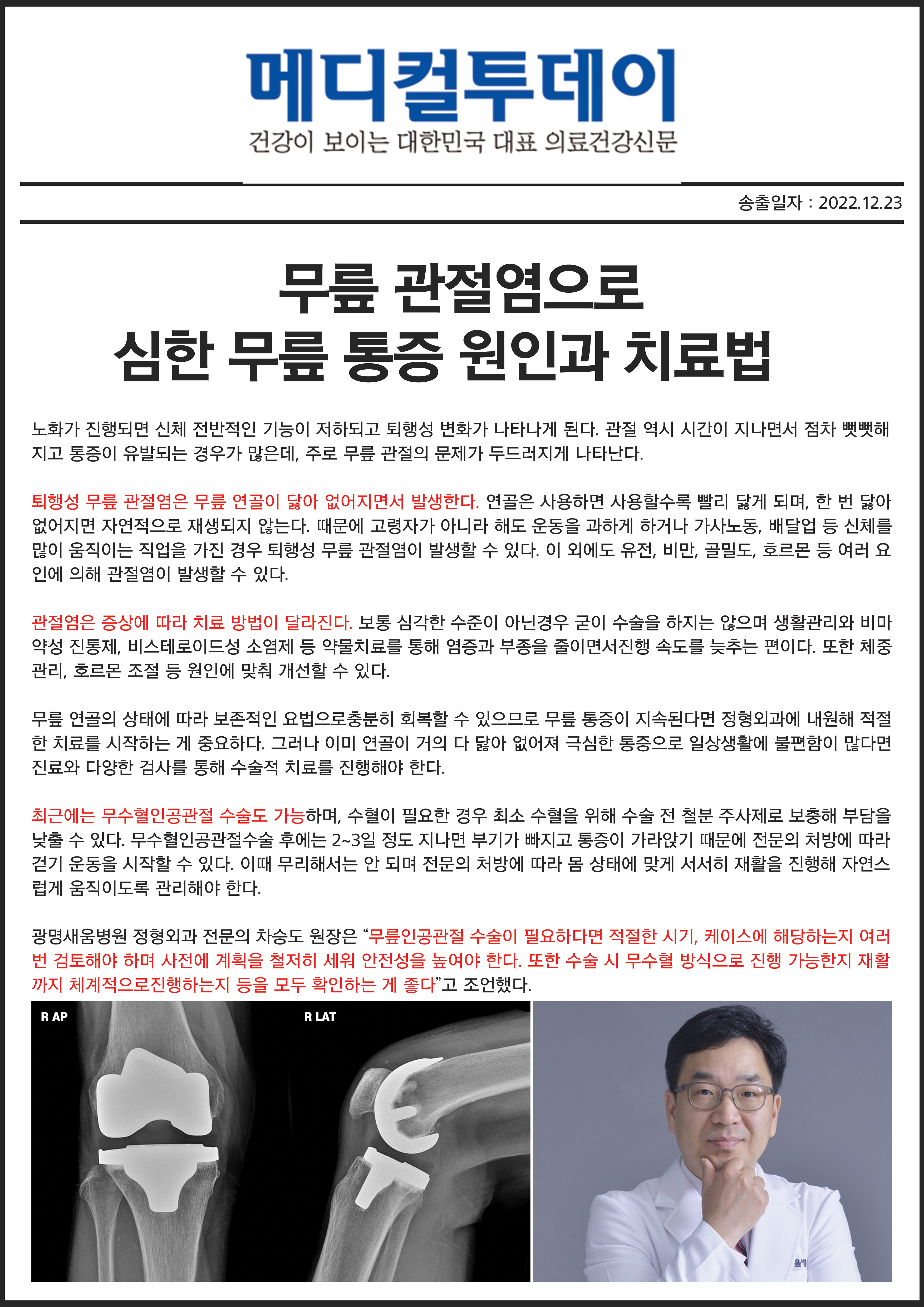 - 환자 수 증가: 2022년 기준 약 450만 명의 국내 무릎관절 질환 환자 발생